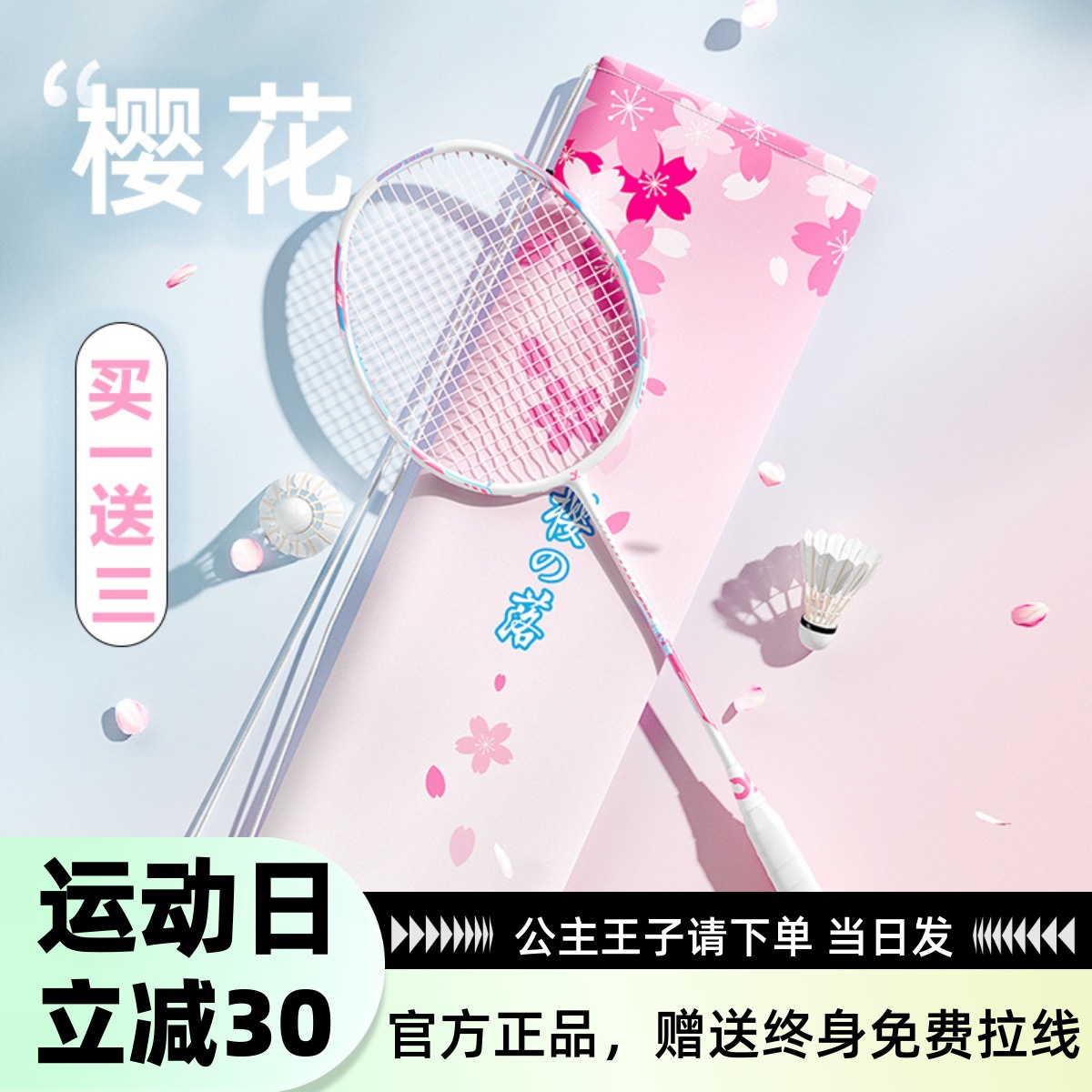 カニ羽桜落ちピンクバドミントンラケット全炭素繊維超軽量バランス攻防の刃初心者単拍双拍