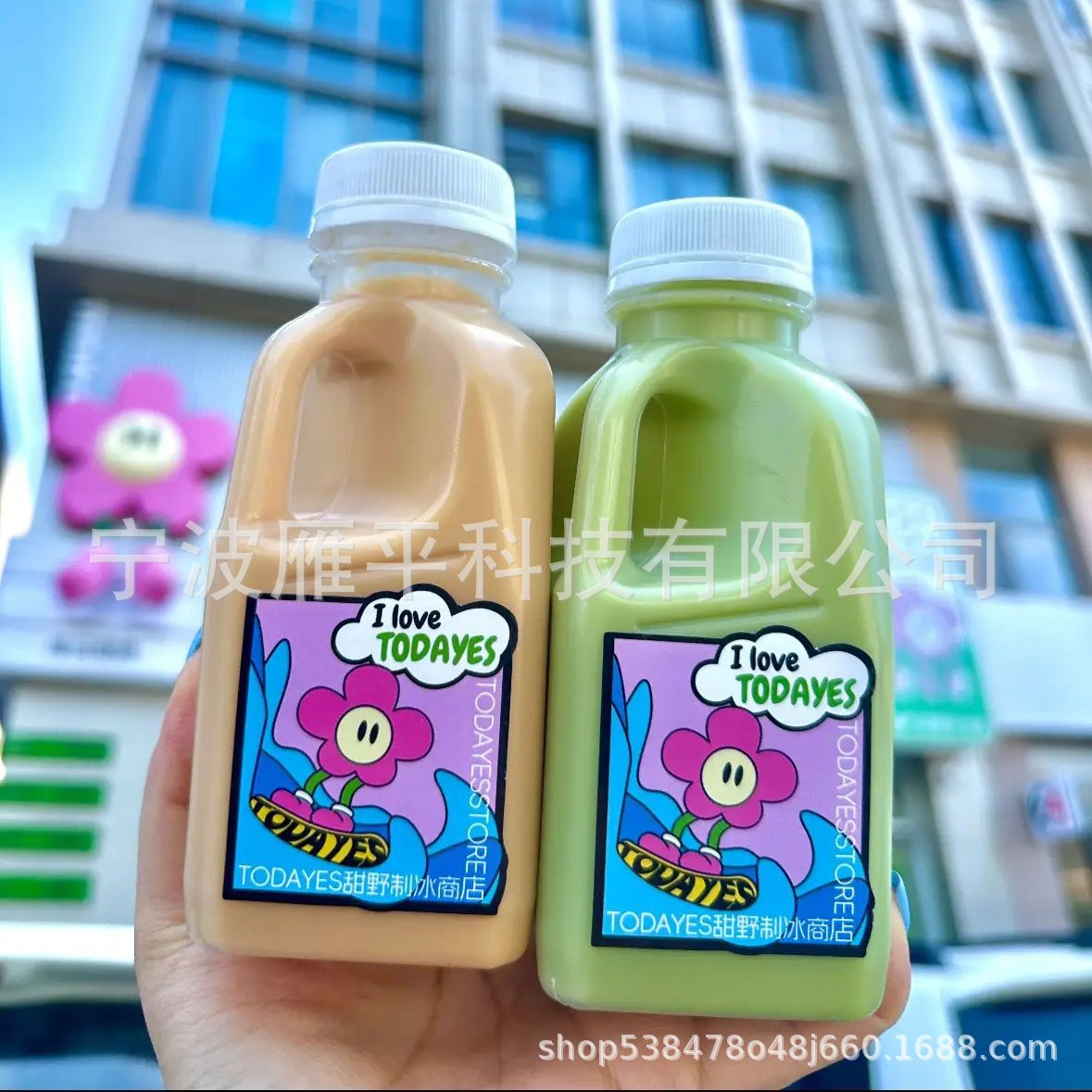 メーカー在庫卸売 PET ペットボトル 350 ミリリットル正方形フラットジュースボトル透明使い捨てテイクアウトミルクティーボトル