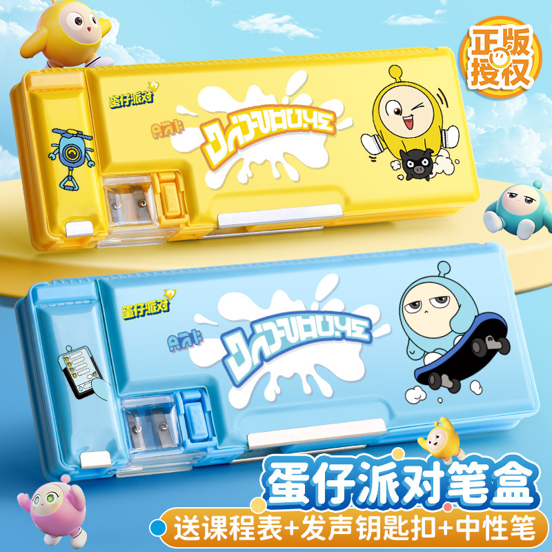 麦と正規版の卵の子のパーティーの多機能の両面の簡単なペンの箱の漫画の文房具の箱の小学校の大容量の鉛筆の箱