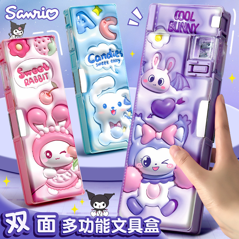 両面多機能文房具ケース小学生大容量鉛筆ケースクロミメロティ女の子用パスワード筆箱