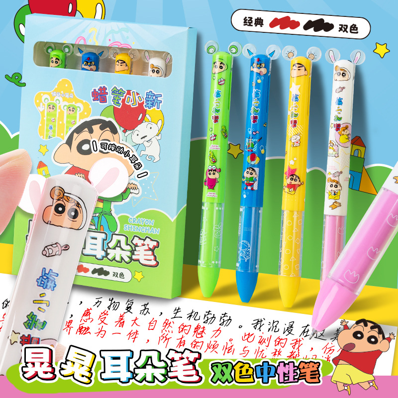 クレヨンしんちゃん正規版中性筆二色小耳創意ブラシ問題筆ST頭速乾かわいいアニメボールペン