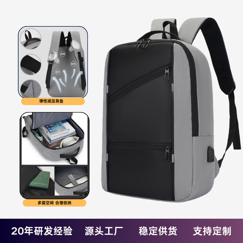 越境仕入れ 大容量カジュアルノートパソコンバックパック シンプルUSB充電機能付きビジネスパソコンバッグ メンズ 印刷可能