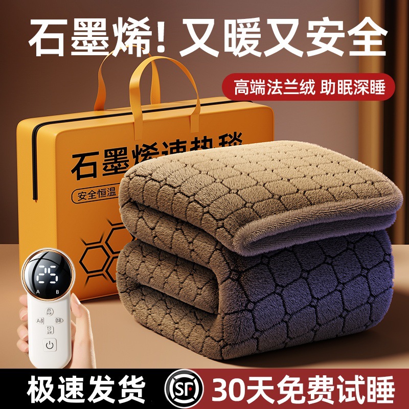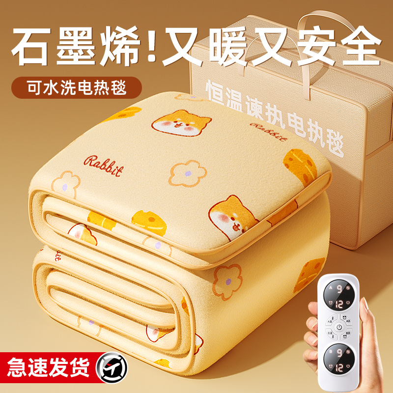 2024新型グラフェン電気毛布シングル二人二重制御定時電気布団家庭用寮冬フランネル