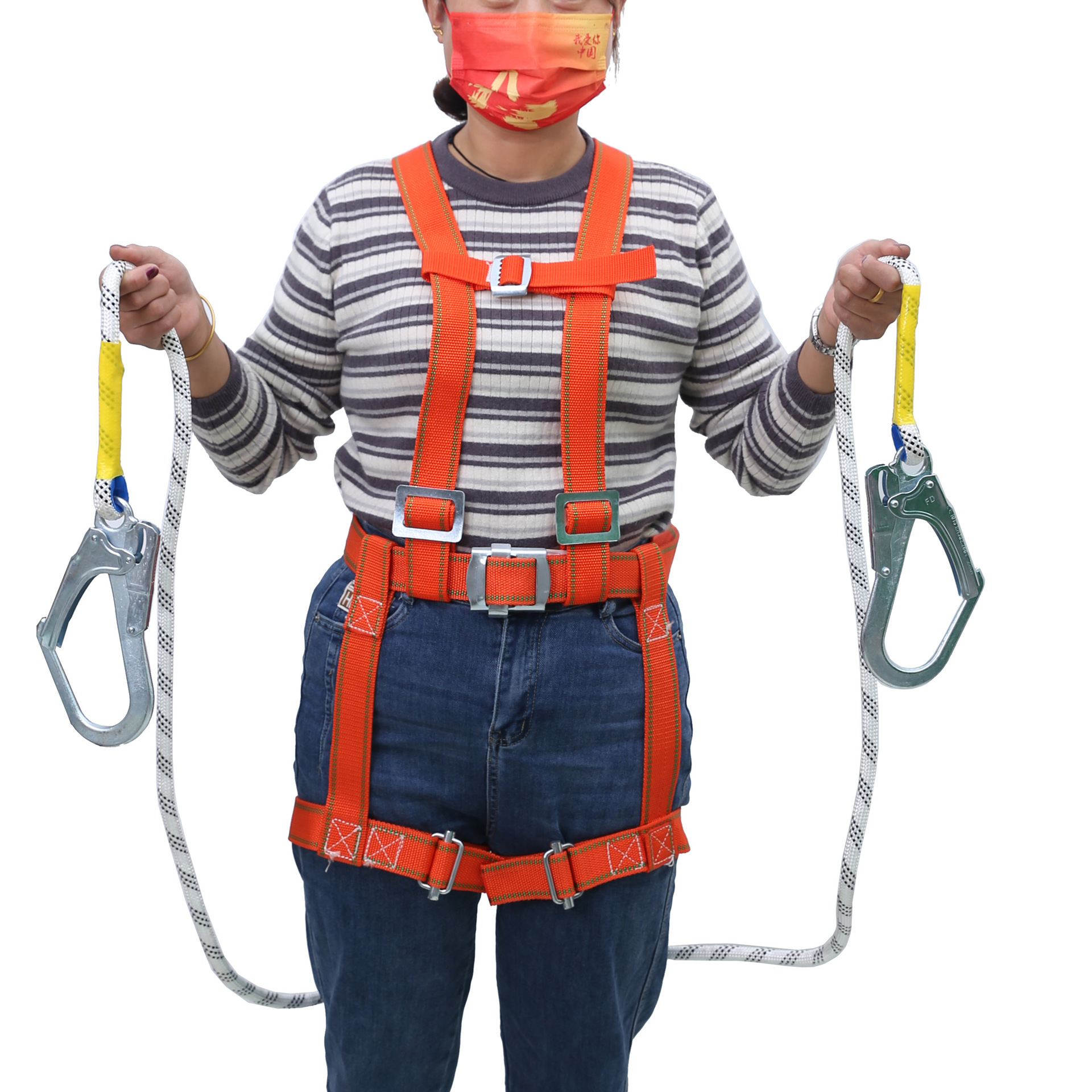 クライミングシートベルト5点式シートベルトダブルフック屋外高所作業シートベルト落下防止保険ベルト現物