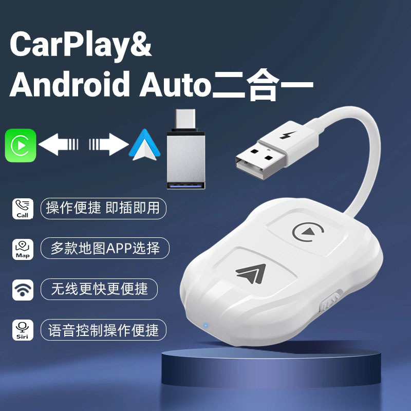 国境を越えた人気商品 ワイヤレスCarPlayボックス Android Auto 2in1 有線変換アダプター 車載用
