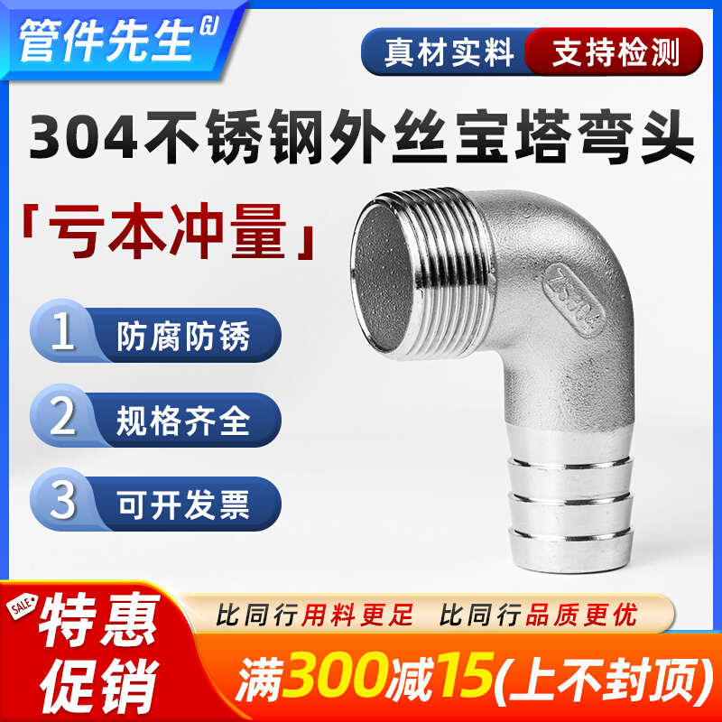 304ステンレス外糸エルボ宝塔90度外糸ねじホース管皮管竹節直挿し4分6分
