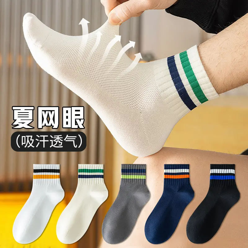 靴下の男性の夏の薄い綿の防臭の中で靴下の青少年の男子の項の中学生の運動の通気性の靴下
