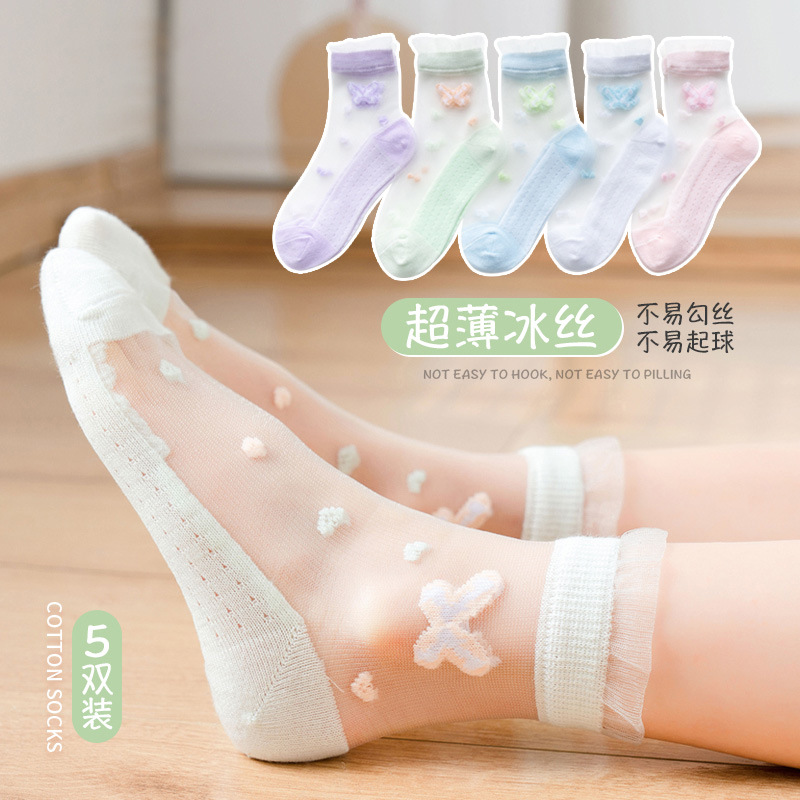 女の子の靴下夏の薄いトレンディな靴下 6-12 歳通気性で蒸れないアイスストッキング学生メッシュレースクリスタルソックス