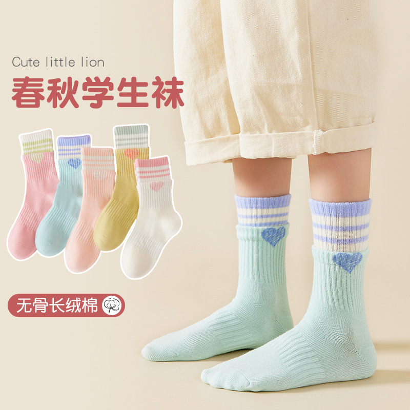 子供の靴下の女の子の春秋の新型の綿の靴下の愛の中で筒の綿の靴下の女の子の秋の子供の靴下の中で大きい子供の靴下の卸売り