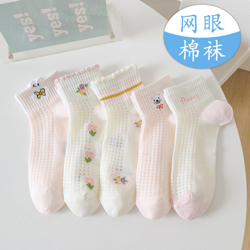 夏季网眼薄款儿童袜子卡通小狗猫咪可爱洞洞短筒女童宝宝短袜