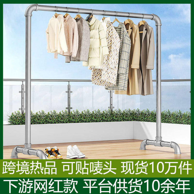 シンプルな衣類ラック、屋外用の厚い耐荷重衣類ラック、寝室用の床置き鋼管、取り外し可能な床置きバルコニー