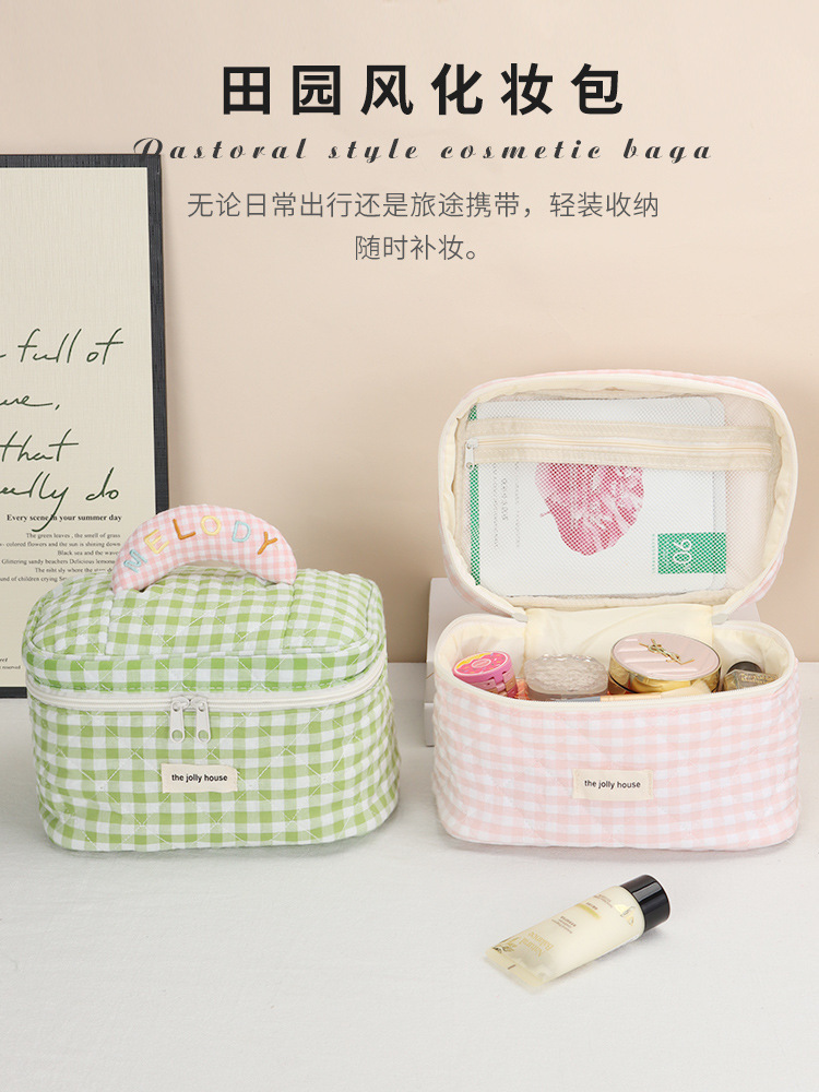 収納袋チェック柄化粧品袋大容量高価値インスタイルキルティングかわいい新しいスタイルの女性の綿
