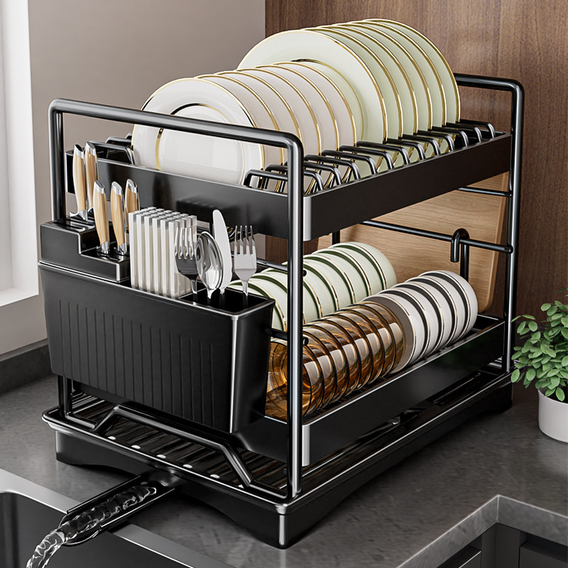 キッチン多機能ディッシュラック二層排水ディッシュラック家庭用パンチングライト高級収納ラック調味料なしの収納ラック
