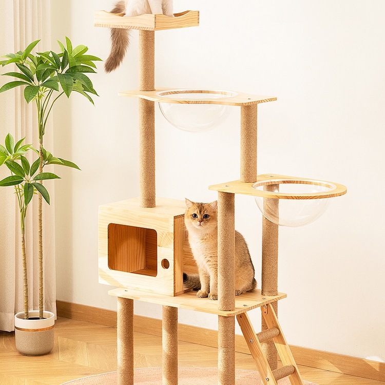 サイザル麻柱一体型無垢材猫クライミングフレーム猫の巣キャットツリースペースカプセルおもちゃ猫用品猫棚