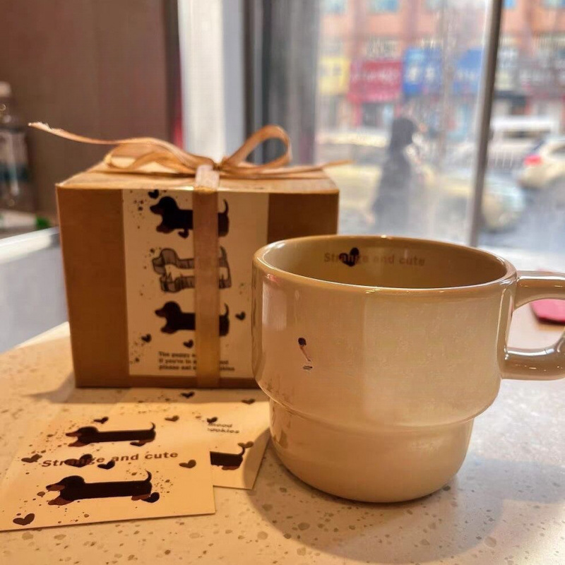 杯子腊肠叠叠原创早餐高颜值小众陶瓷可爱小狗精致卡通马克杯咖啡