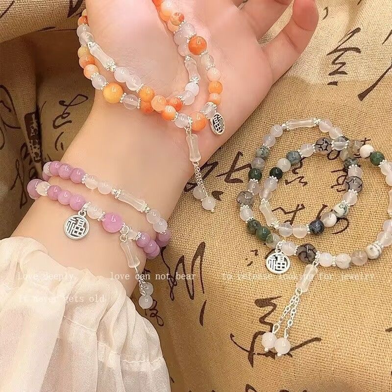 ダブルブレスレット付きの重ね付けブレスレット、女性用のハイエンドブレスレット、レトロなニッチな新しい中国風の学生デザインのタッセルビーズ