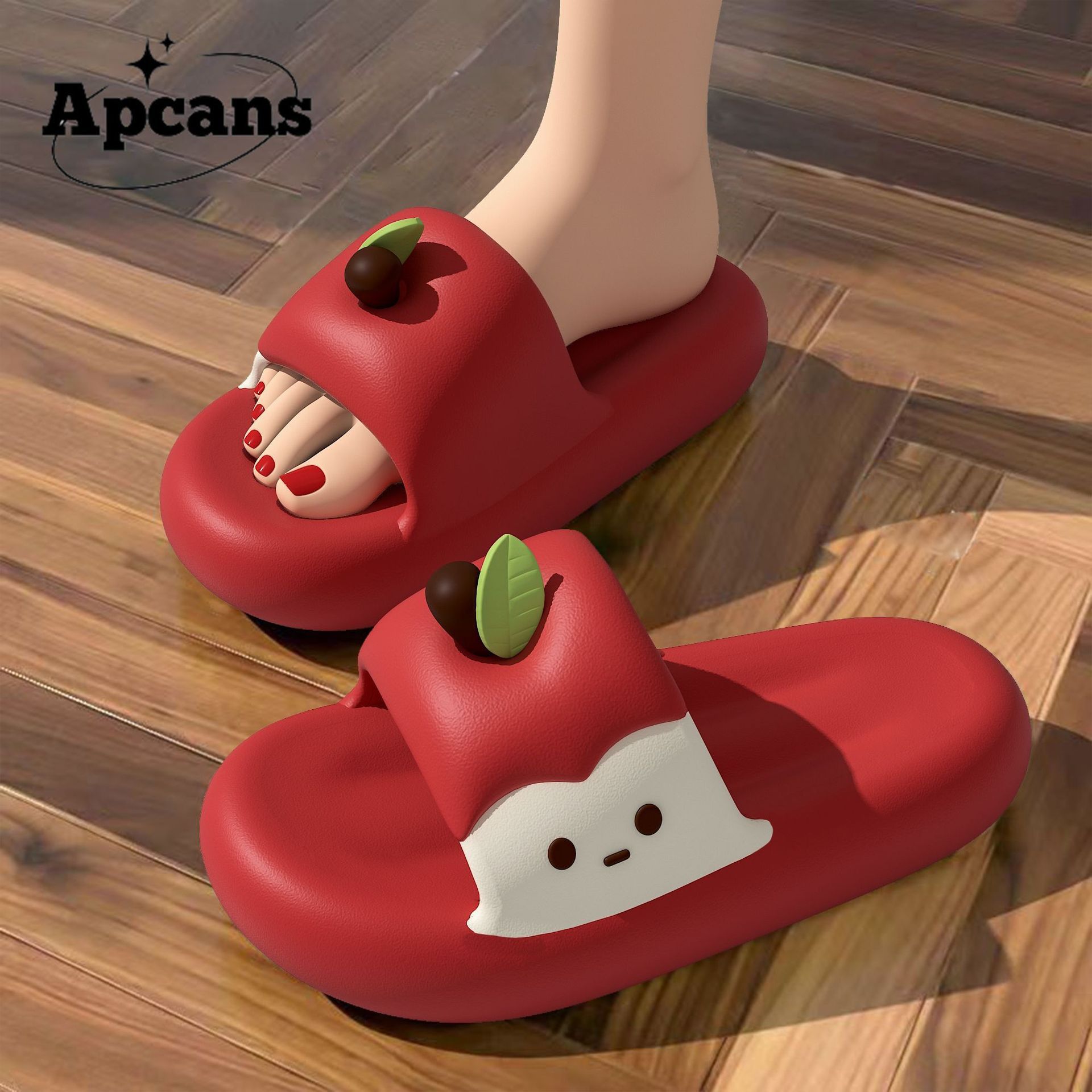 Apple かわいい屋内滑り止め厚底楽しくて快適な女性の夏のスリッパ、パーソナライズされたホームカップルサンダルとスリッパ