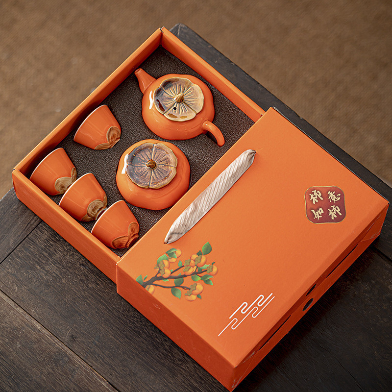 柿ティーポットセット、会社の開業、すべてがうまくいくギフト、ギフトボックス ✅ イベント会柿 ビジネスティーセット ポット1個