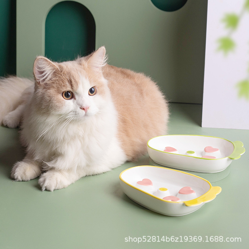 食事防止ボウル、かわいい猫用フードボウル、猫用ボウル、セラミックペット用品ボウル、犬用ボウル、フードボウル、転倒防止スローフード猫用ボウル