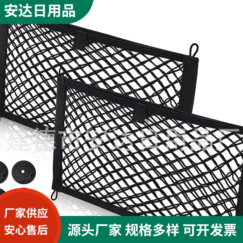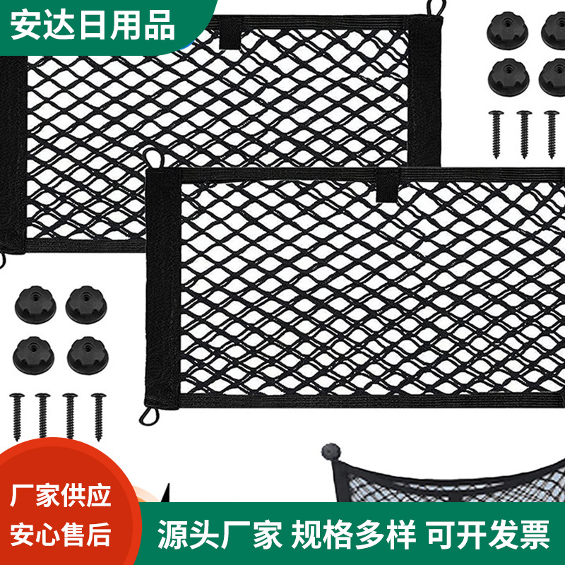 卸売りppポリエステル材質自動車トランクネットポケットトランク荷物ネット固定ネット伸縮式物置袋