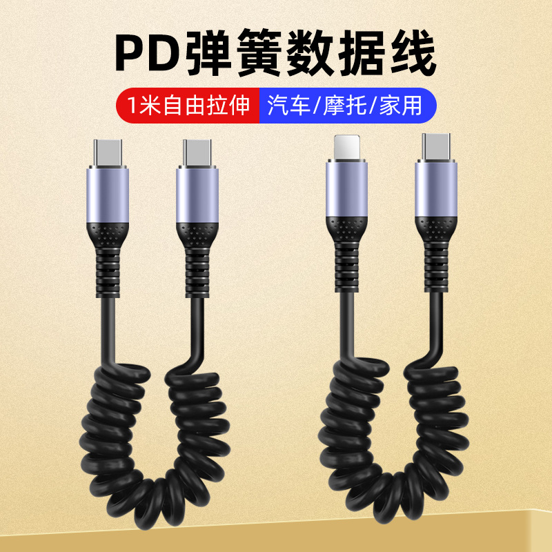 超速充usbシングルエルボースプリング伸縮車載携帯電話ケーブルナビゲーション凍結防止type c充電ケーブル