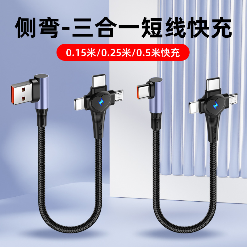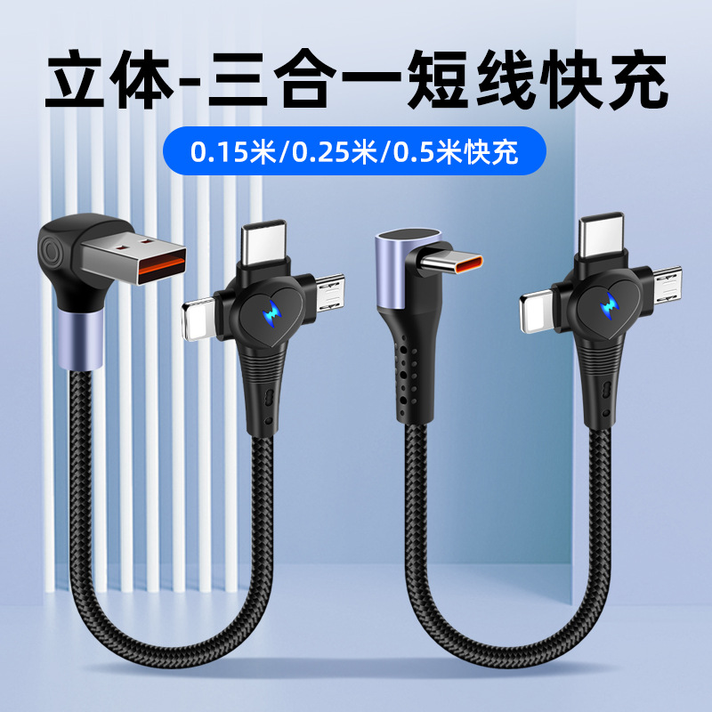 一引き三データ線超速充短金携帯三頭充電線三合一携帯電話充電宝短線