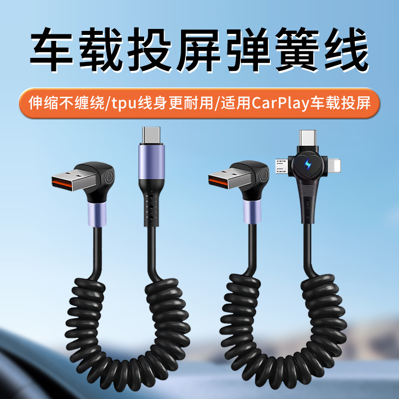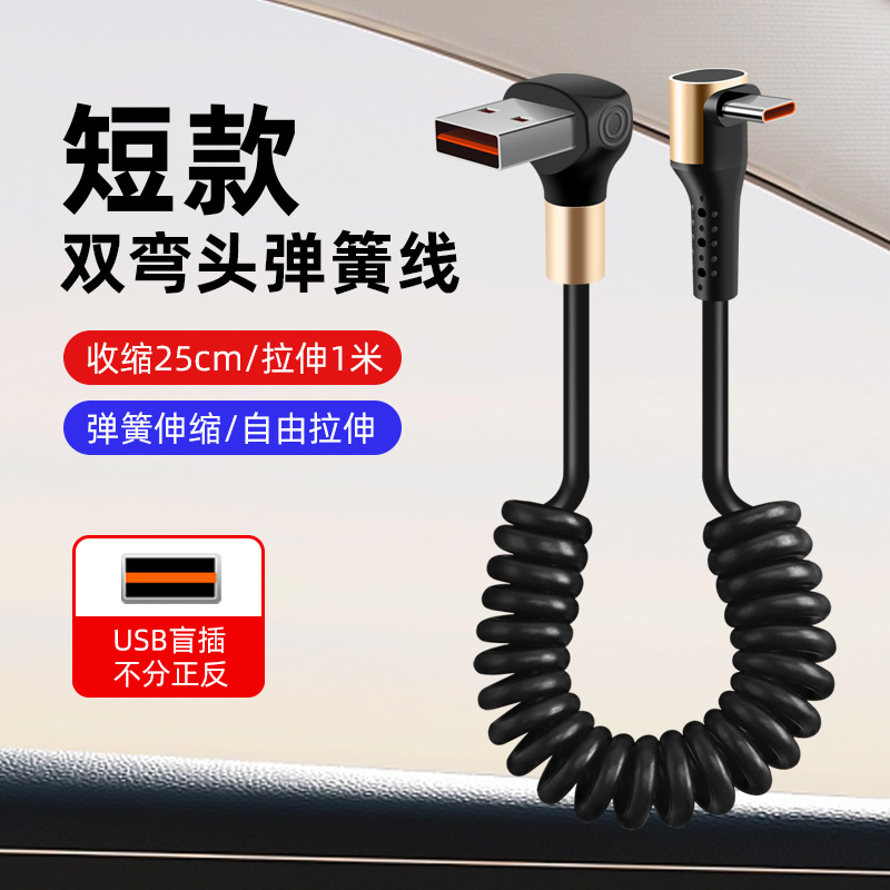 6a超急速充電シングルエルボー66wスプリング伸縮車載データ線ナビゲーション凍結防止type c充電線