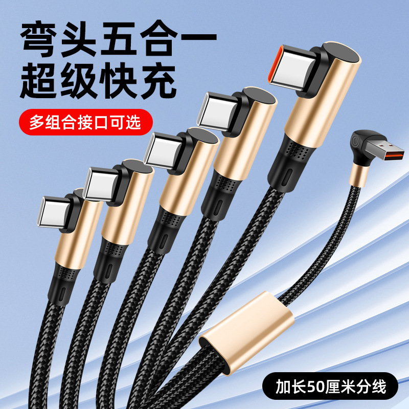 5 Android 充電ケーブル マルチヘッド 1 対 5 typec データケーブル 超高速充電 5 イン 1 携帯電話エルボ モバイル ゲーム ケーブル