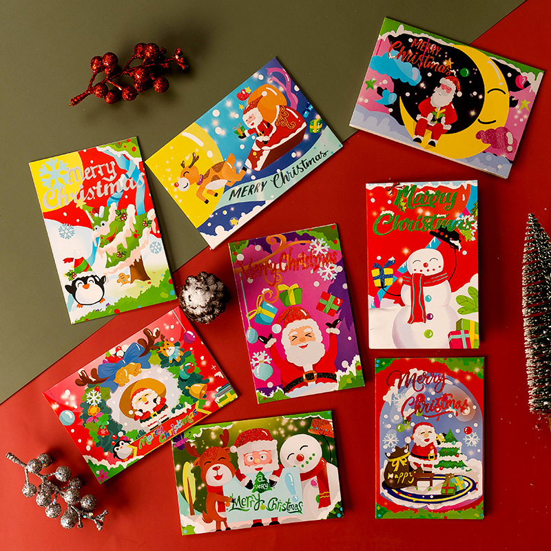 クロスボーダークリスマスグリーティングカードクリエイティブクリスタルカード漫画子供祝日祝福クリスマス感謝カードメッセージカード