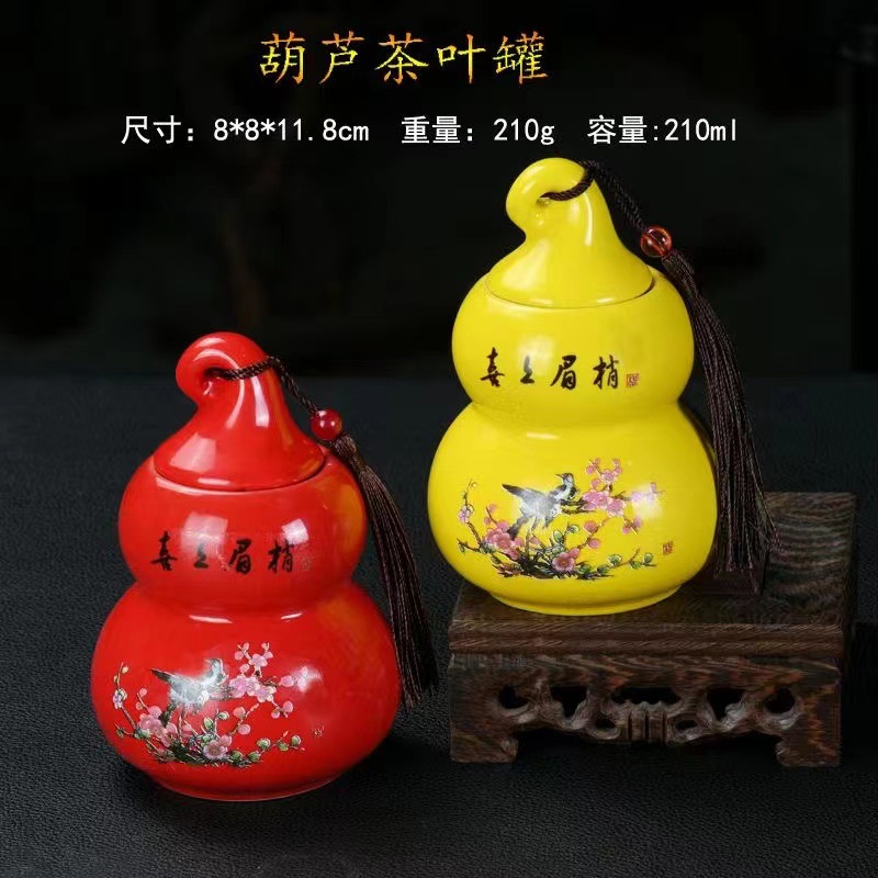 陶磁器窯変色釉薬トランペット連体ひょうたん茶葉缶白茶緑茶龍井貯蔵物密封缶包装プレゼント