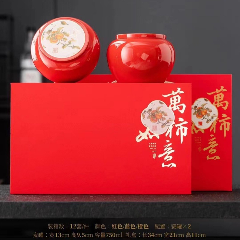 茶葉包装礼箱空箱陶磁器茶葉缶密封保存茶缶紅茶緑茶小種1斤礼箱セット