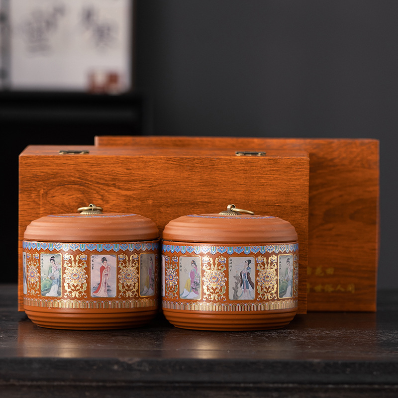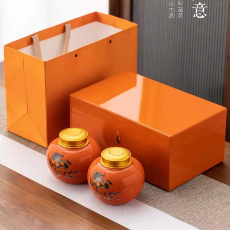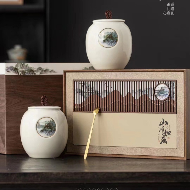 高級陶磁器茶葉缶ギフトボックス空箱汎用双缶セット密封缶ロゴプレゼント