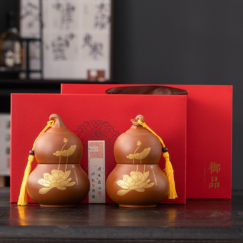 陶磁器汝窯哥窯瓢箪茶葉缶密封保存紫砂陶磁器大ギフトボックス包装サポート予約ロゴ