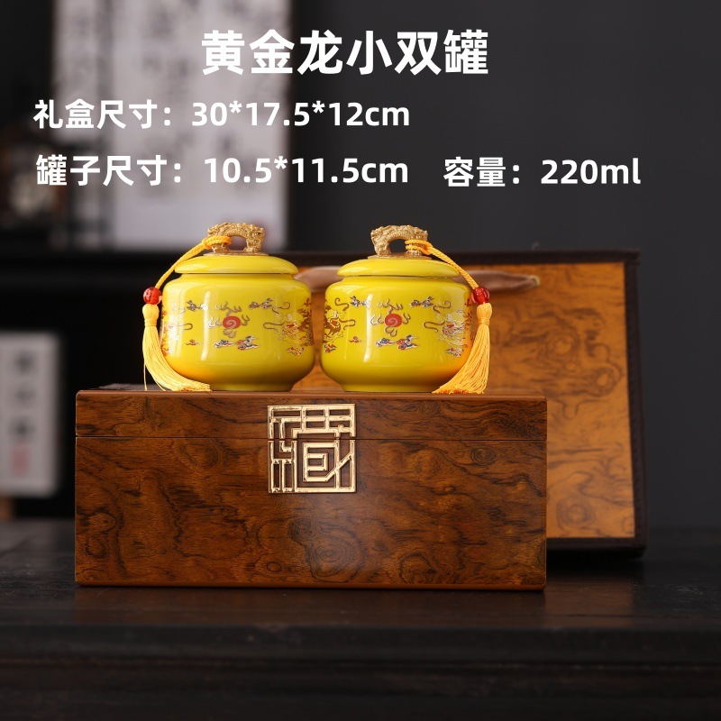 茶葉缶陶磁器紅茶緑茶大サイズ密封缶実木金糸楠木礼箱茶葉1斤包装