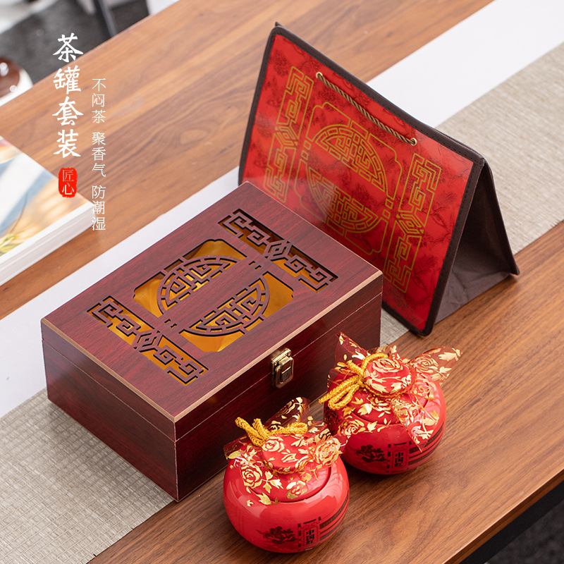 茶葉包装ギフトボックス空箱陶磁器茶葉缶密封保存茶缶紅茶緑茶1斤高級木製ギフトボックス