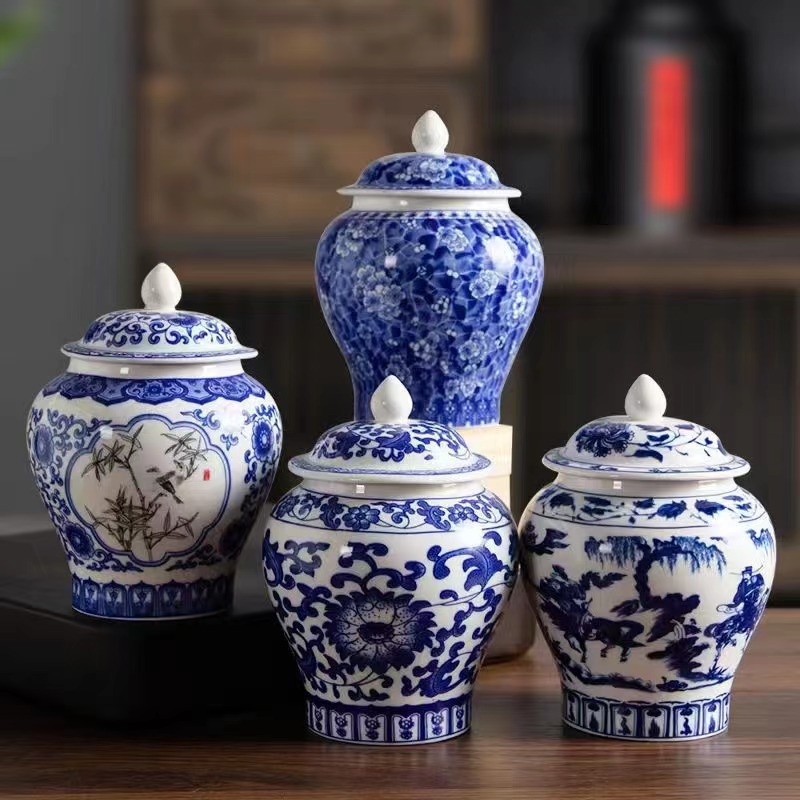 青花磁器茶葉缶レトロ陶磁器貯蔵缶蓋付き密封缶防湿家庭用贈答茶葉缶卸売り
