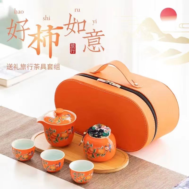 工夫旅行茶器セットの柿如意ビジネス不動産のお土産はロゴを印刷できます。