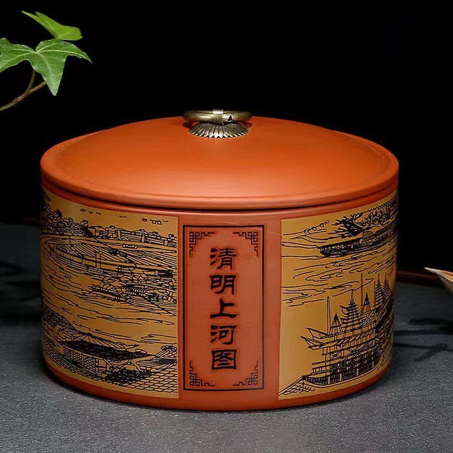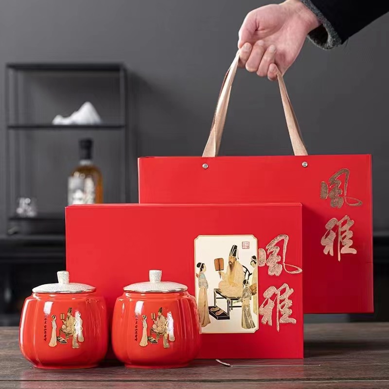 茶葉包装箱空箱高級古樹紅茶緑茶通用半斤入空礼箱密封紫砂陶磁器缶