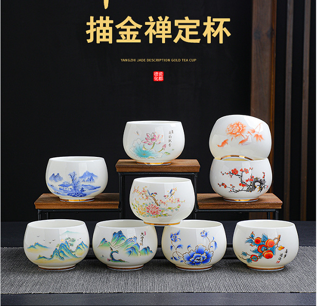 羊脂玉の主人のティーカップの徳化の白磁の心は百福の杯の大きいサイズを経てお茶を飲みます。