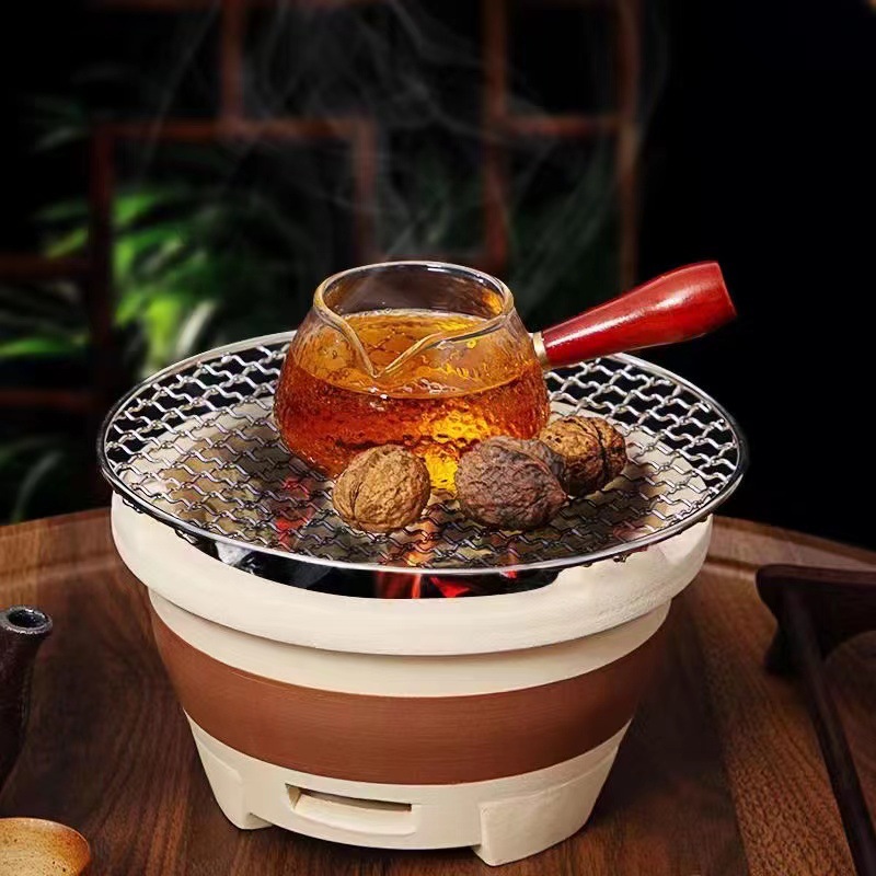 現品の囲炉裏で茶器を煮る側でティーポットを煮る粗陶磁器の屋外の小さい茶器を焼いて家庭用炭火茶器セットを焼きます。
