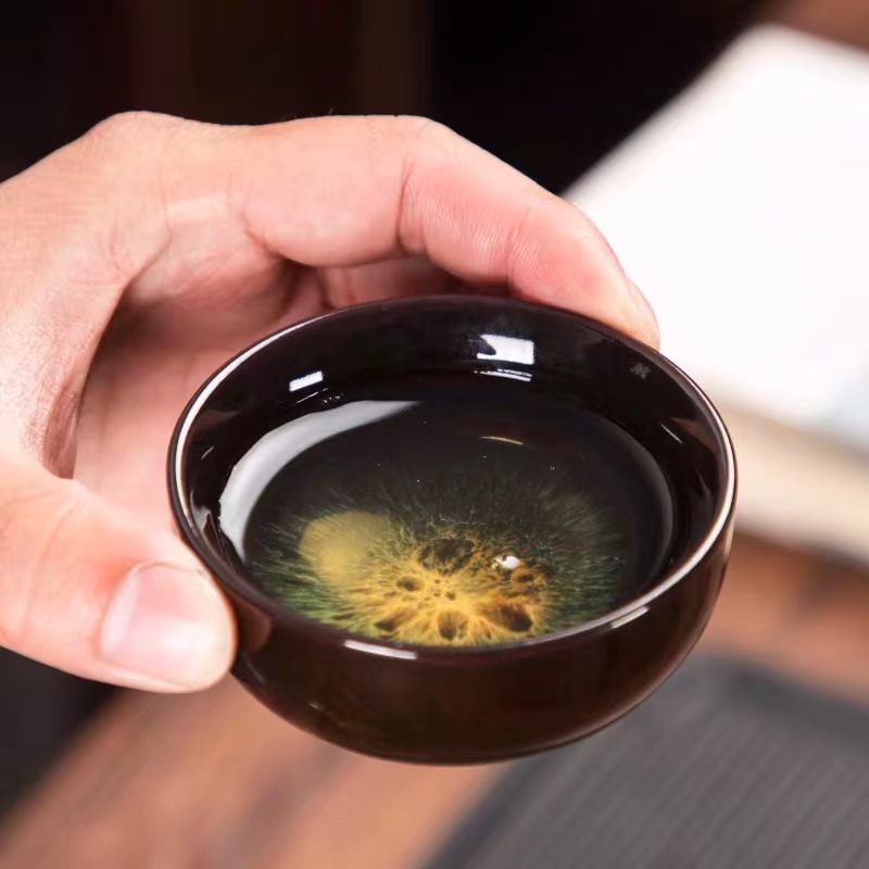 沙金建杯銀蓮茶杯主人杯高級天目杯品茗杯陶磁器杯