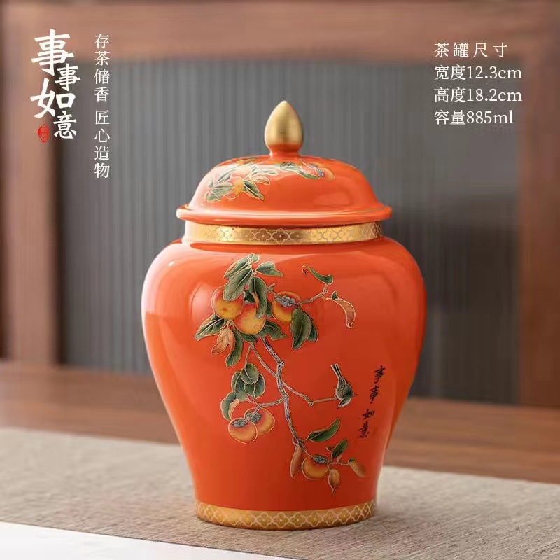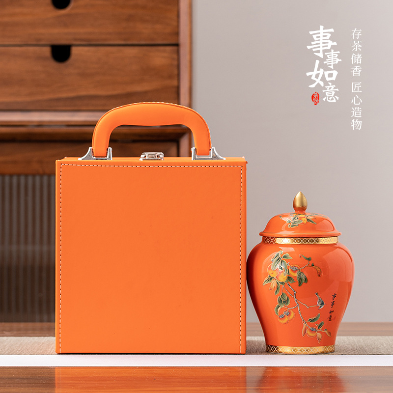 万事如意柿半斤紅茶緑茶陶磁器茶葉缶密封缶結婚祝い喜糖缶プレゼント礼箱