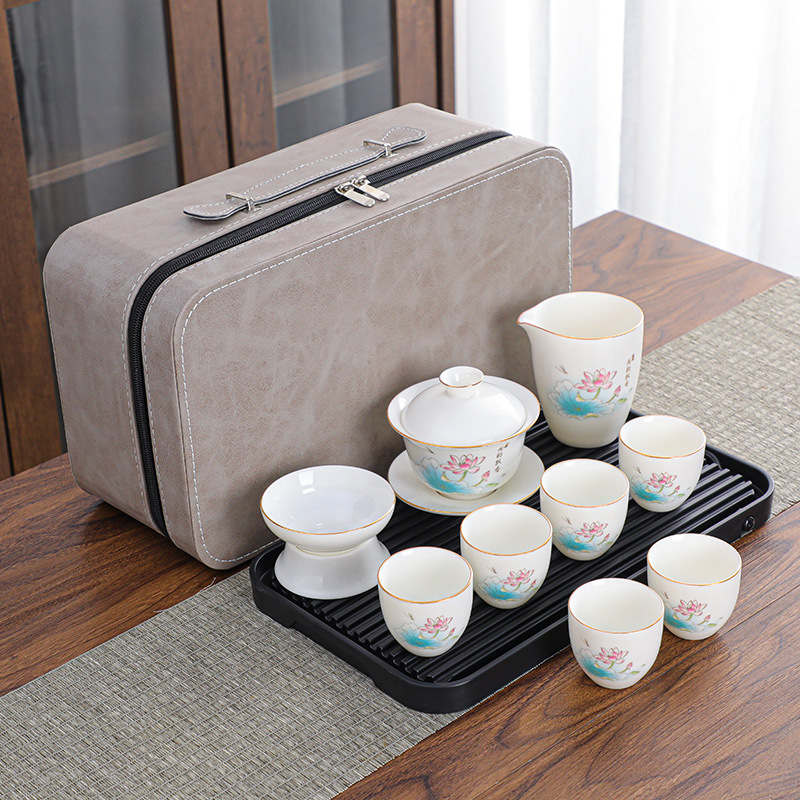 中国式羊脂玉旅行茶器セット陶磁器白磁ティーポット礼箱ビジネスプレゼント印刷ロゴ