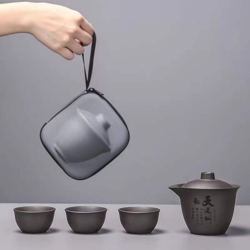 紫砂旅行茶器セット一本四杯携帯型快客杯工夫茶器ギフトロゴ