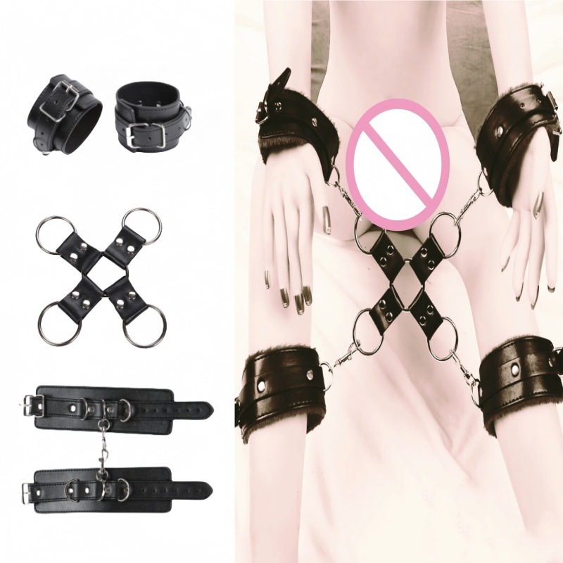 アダルト製品セクシーなレザークロスバックル手足手錠取り外し可能な大人の拘束浮気SM拘束手錠おもちゃ