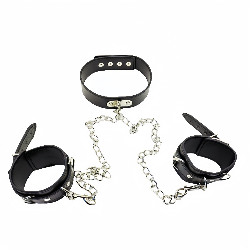 SM セクシーな PU ネックレスネックカバー金属チェーン付き手錠乳クリップバインディングボンデージ調教大人のおもちゃ