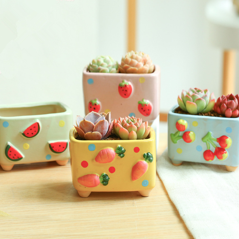 田園清新彩画多肉植物レリーフ果物植木鉢創意多肉植木鉢陶磁器シンプル多肉盆器