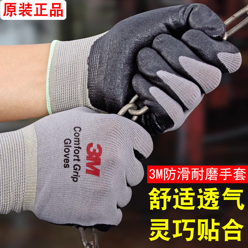 3M 滑り止め耐摩耗性手袋産業労働ニトリルコーティングされたパームグリップタッチスクリーン労働保護快適な手袋通気性