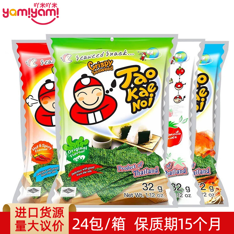 タイから輸入されたTaoKaeNoiのオーナーの仔海苔片タイから輸入されたネット紅海苔のスナック袋には32gが入っています。