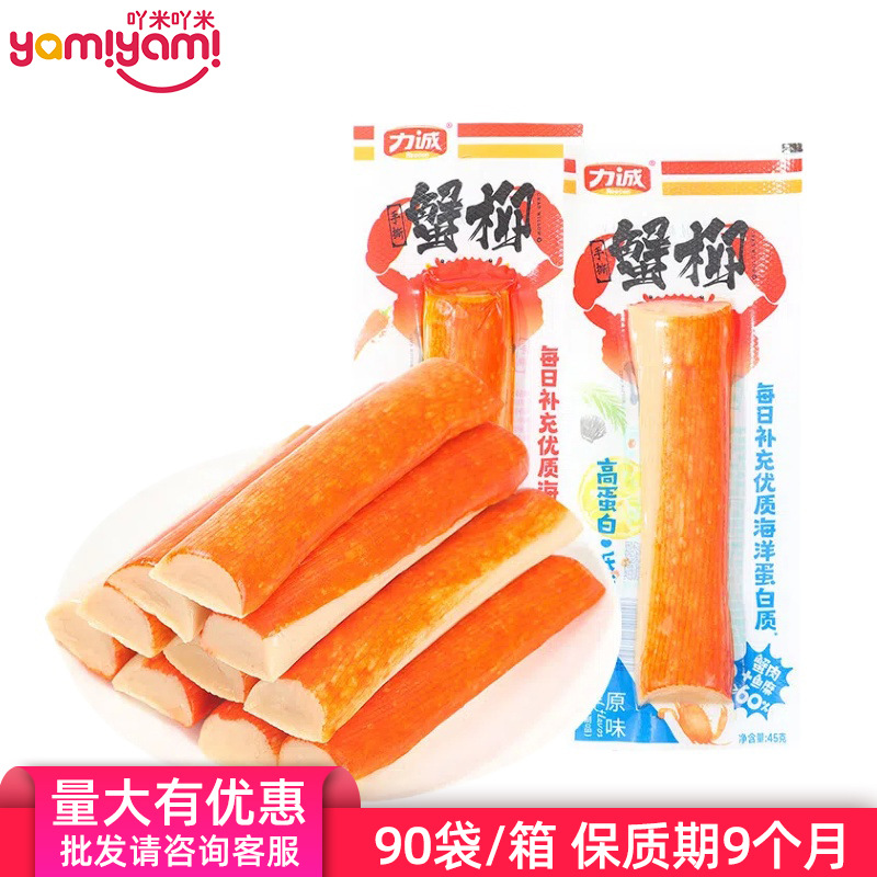 国産の力誠の手はカニの柳のカニの肉の棒を引き裂きます。